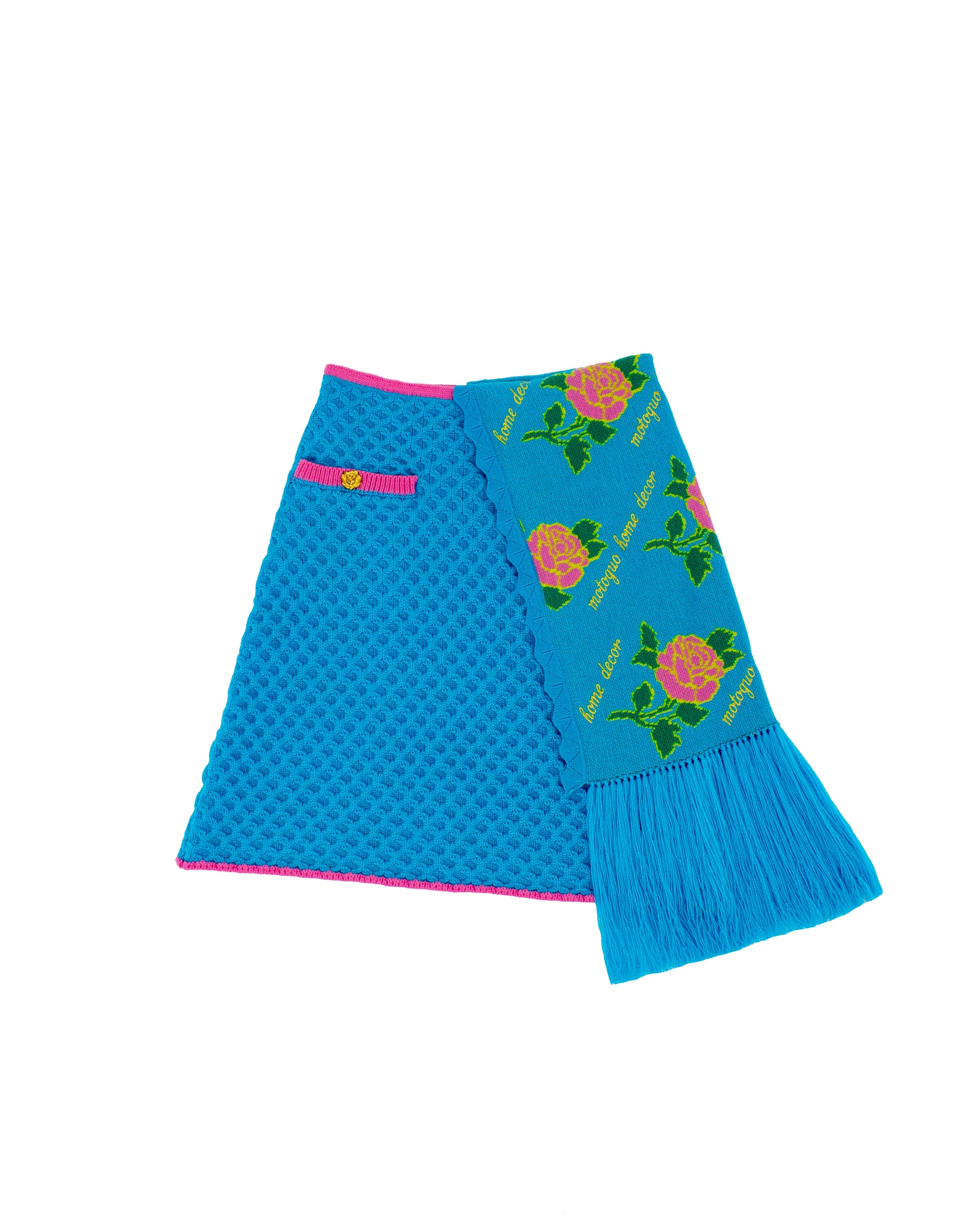 - Playfully accented with rose jacquard, logo and text embroidered in gold
