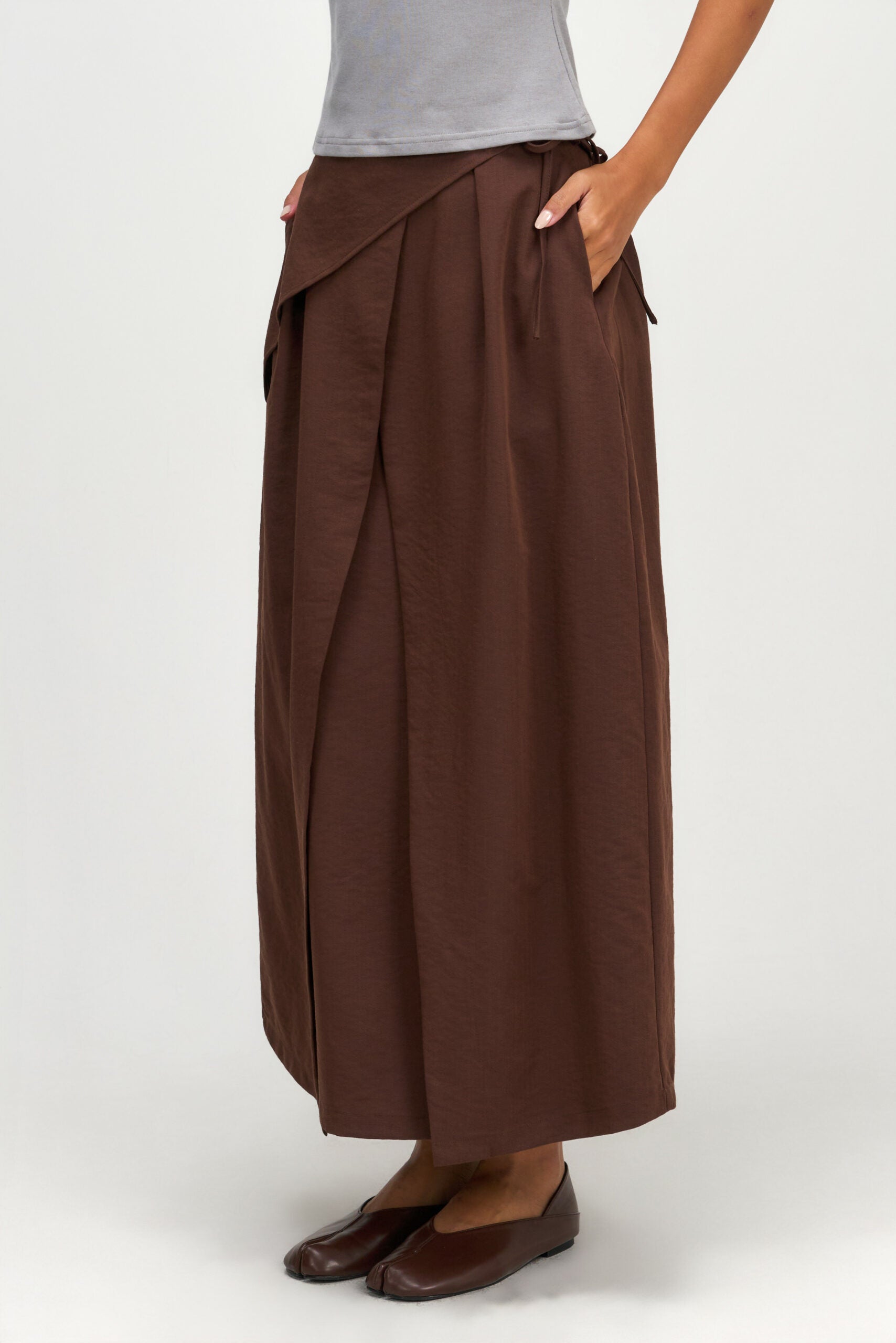 Waist Bandeu Pleated Skirt – Plus Long (Brown)