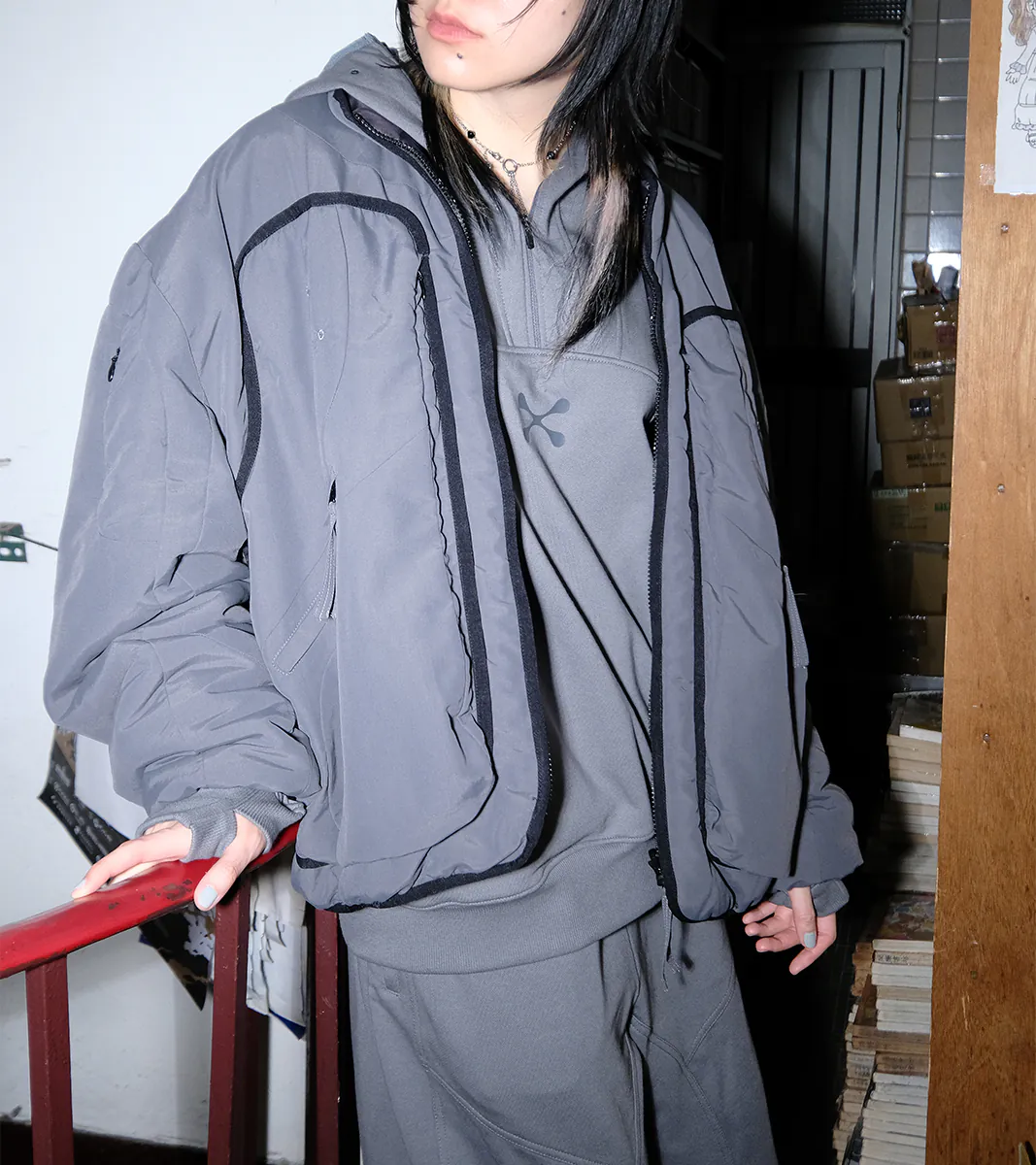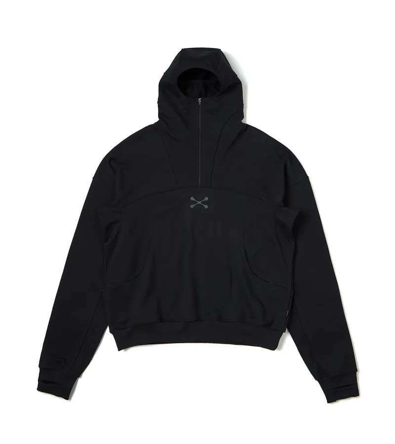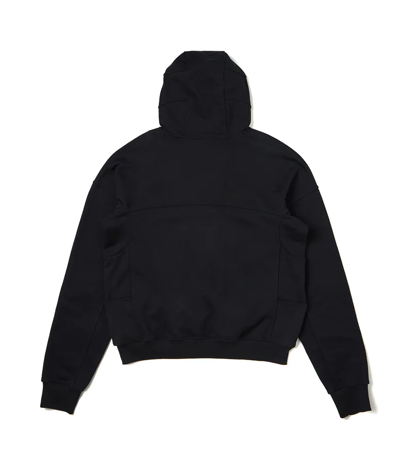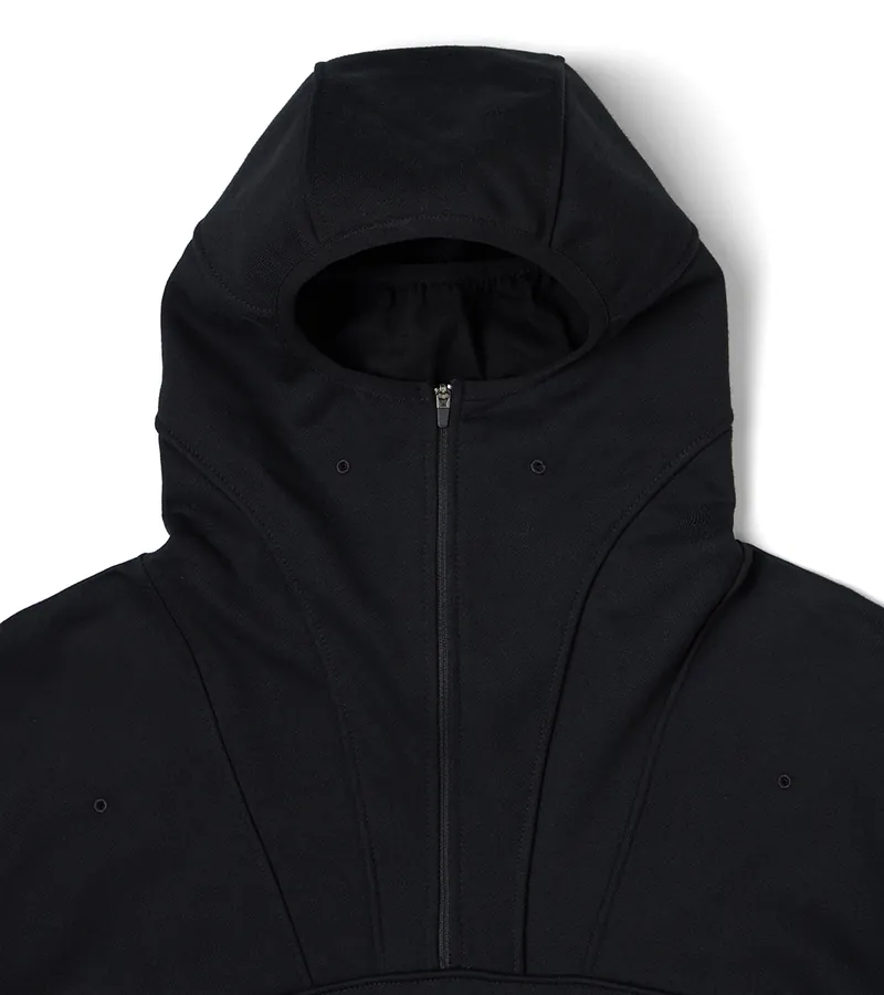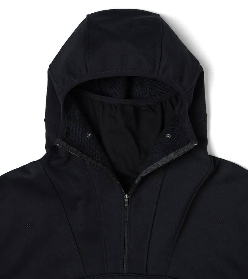 The Mask type hood design is something we particularly love, as it adds a sense of style when worn up and a unique weighty feel when down. In addition, the garment’s intricate yet streamlined paneling, along with three pockets and thumb holes, makes this Mask hoodie stand out even more in terms of fashion.