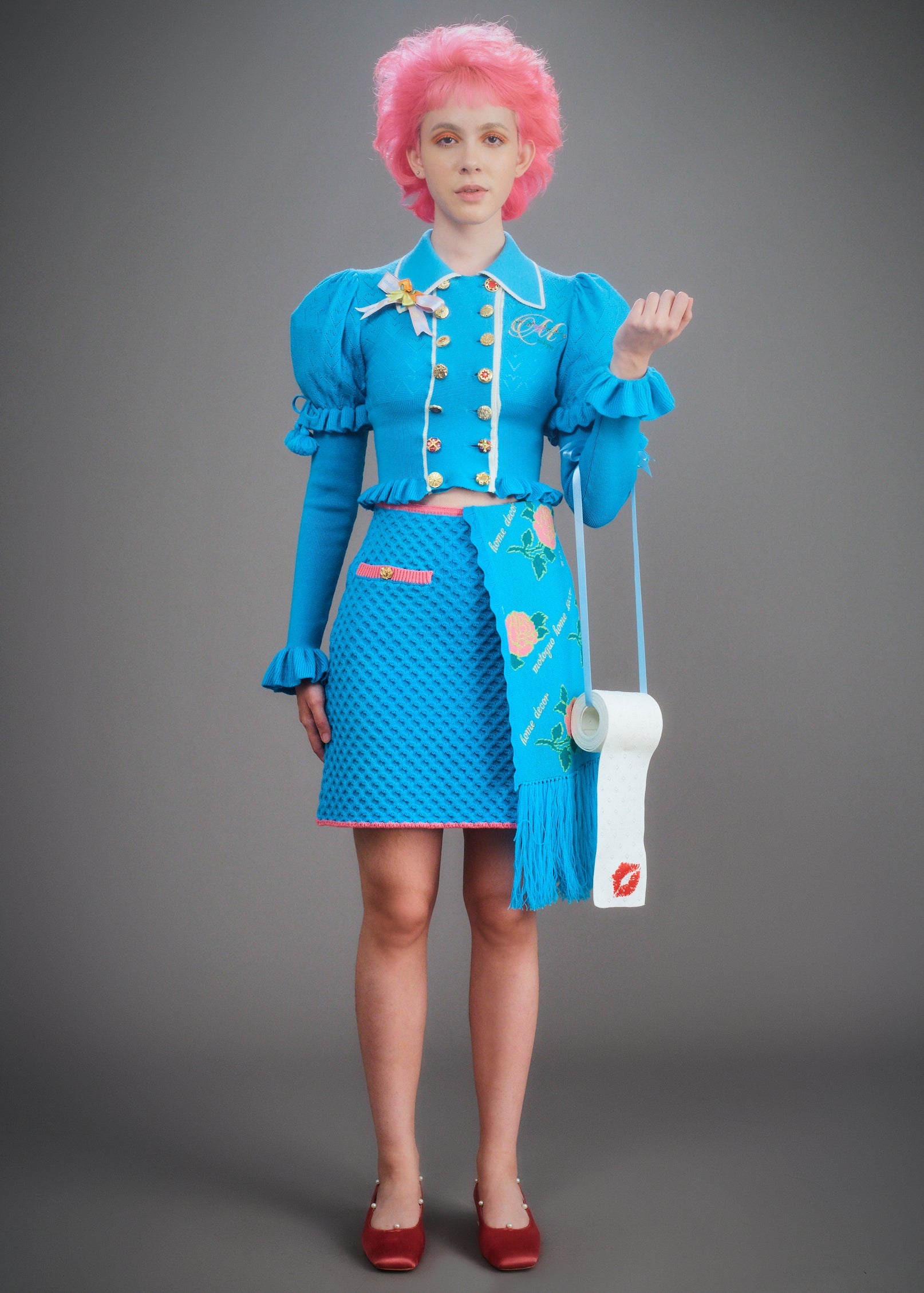 - Elbows, cuffs and hem trimmed with fluttering ruffles