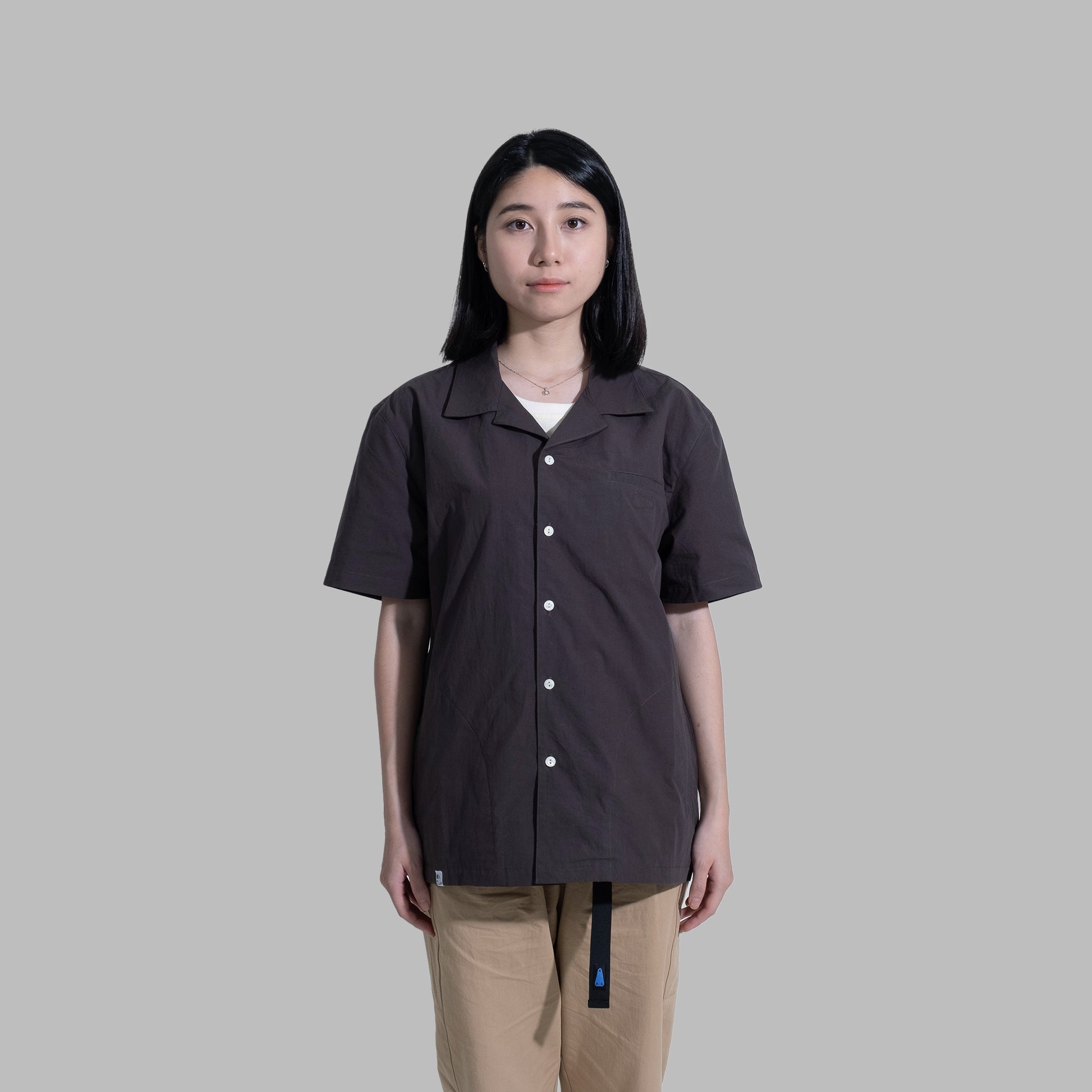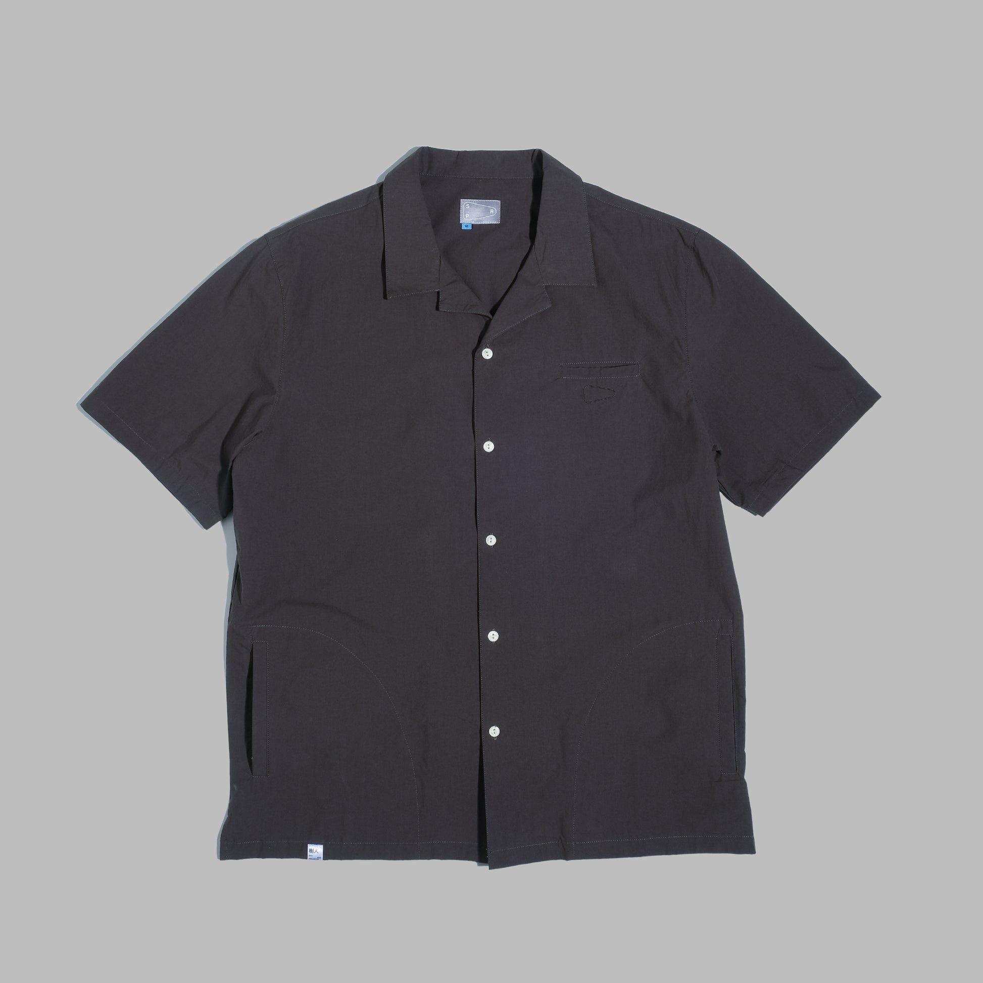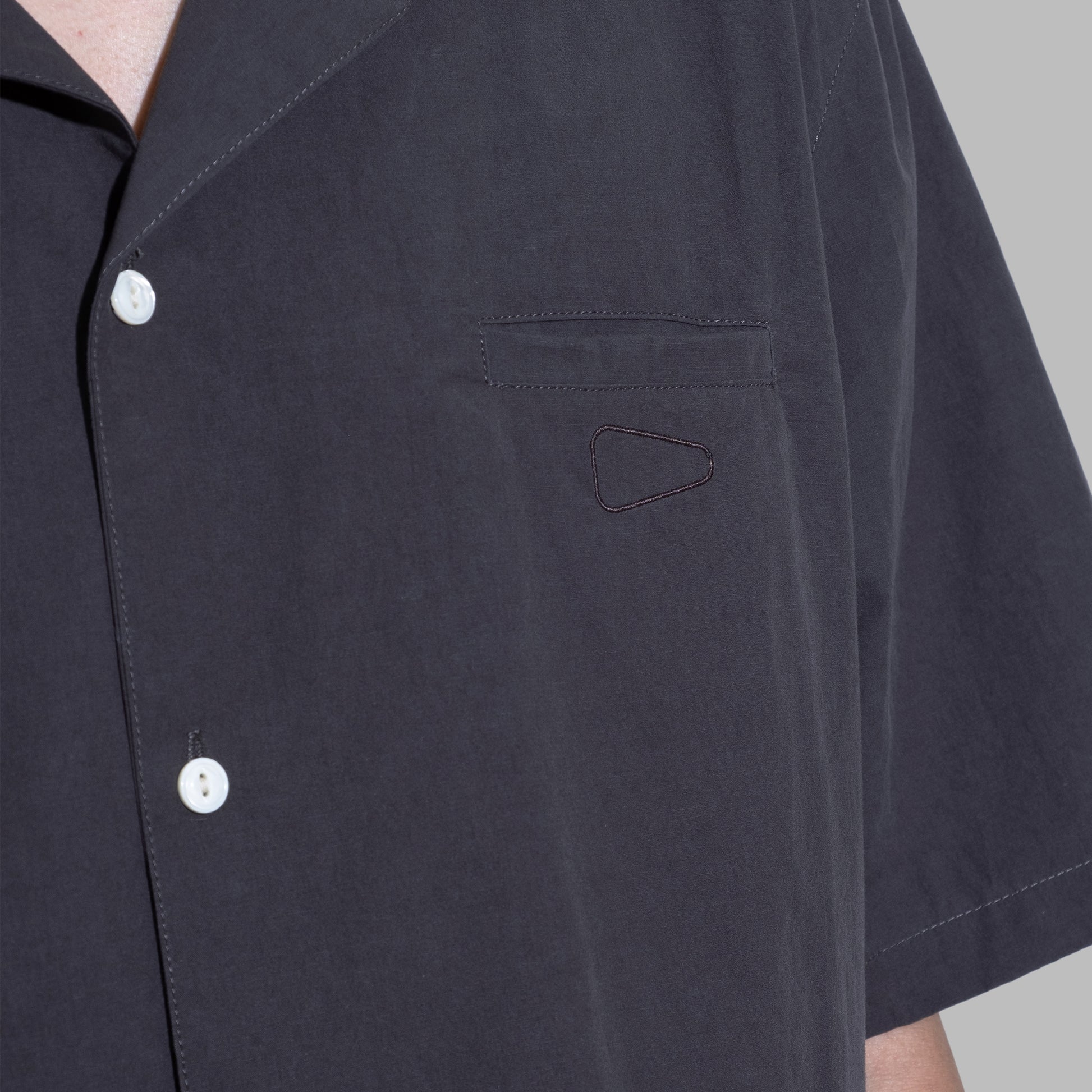This charcoal cotton work shirt features an open collar, relaxed fit, and two side pockets for convenience. The chest pocket is embroidered for an added touch of style. The breathable fabric and relaxed fit make it ideal for all-day wear.